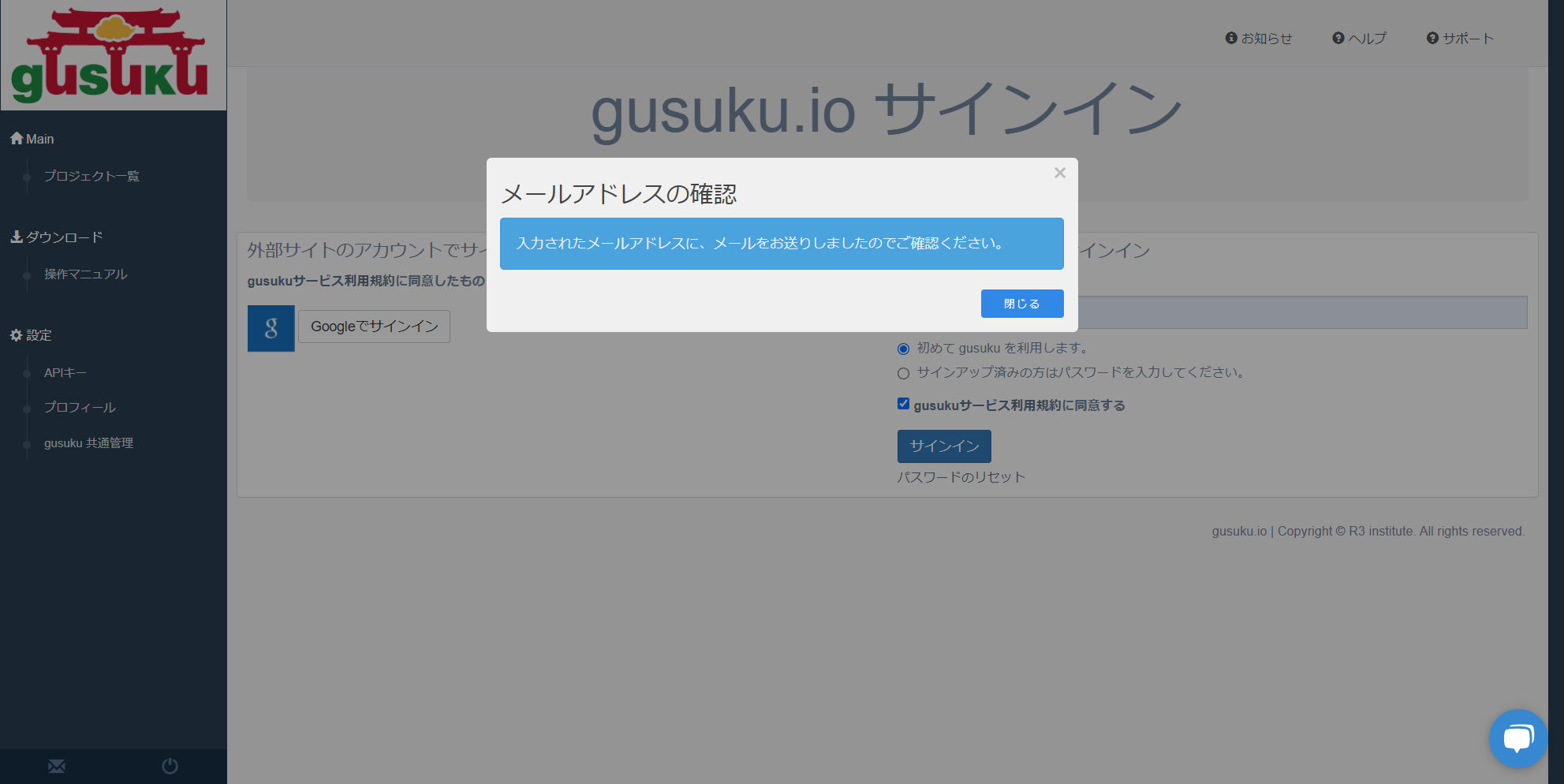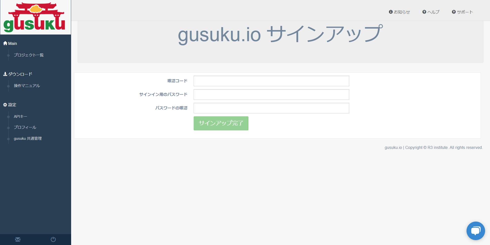 サインアップ完了ボタンをクリックすることで、gusuku Deploitの登録は完了です。