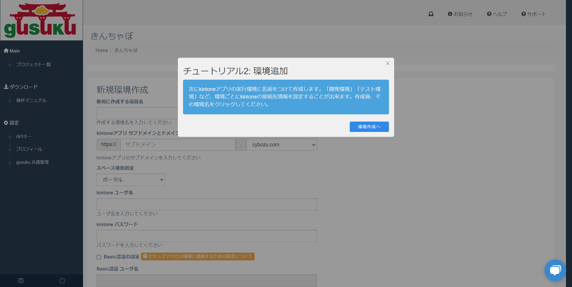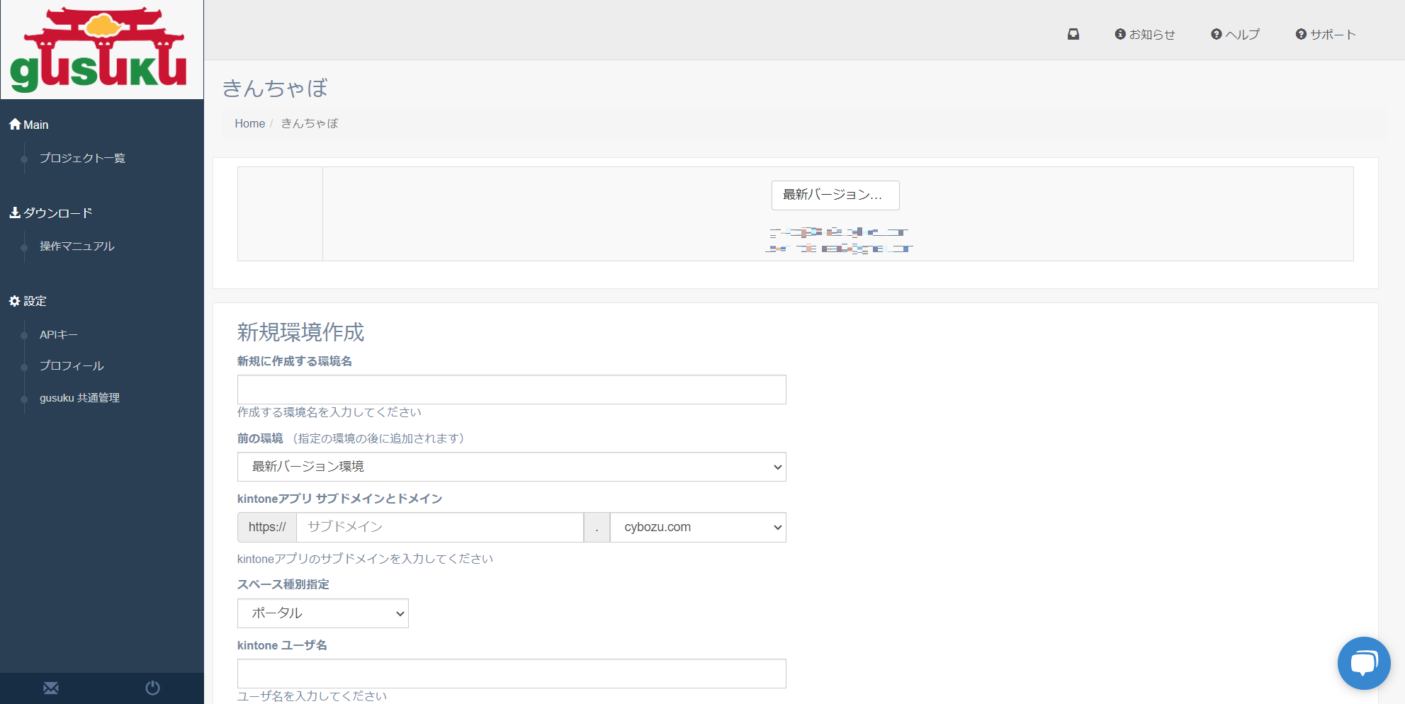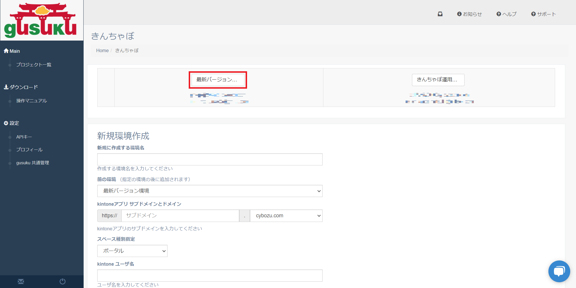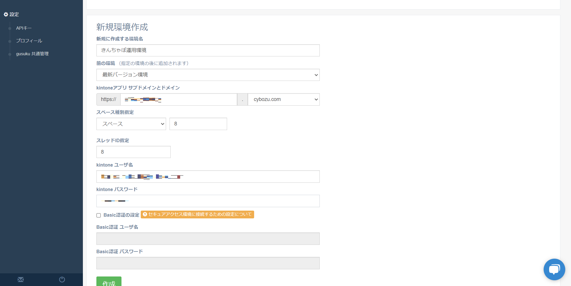 | 新規に作成する環境名 | きんちゃぼ運用環境 |