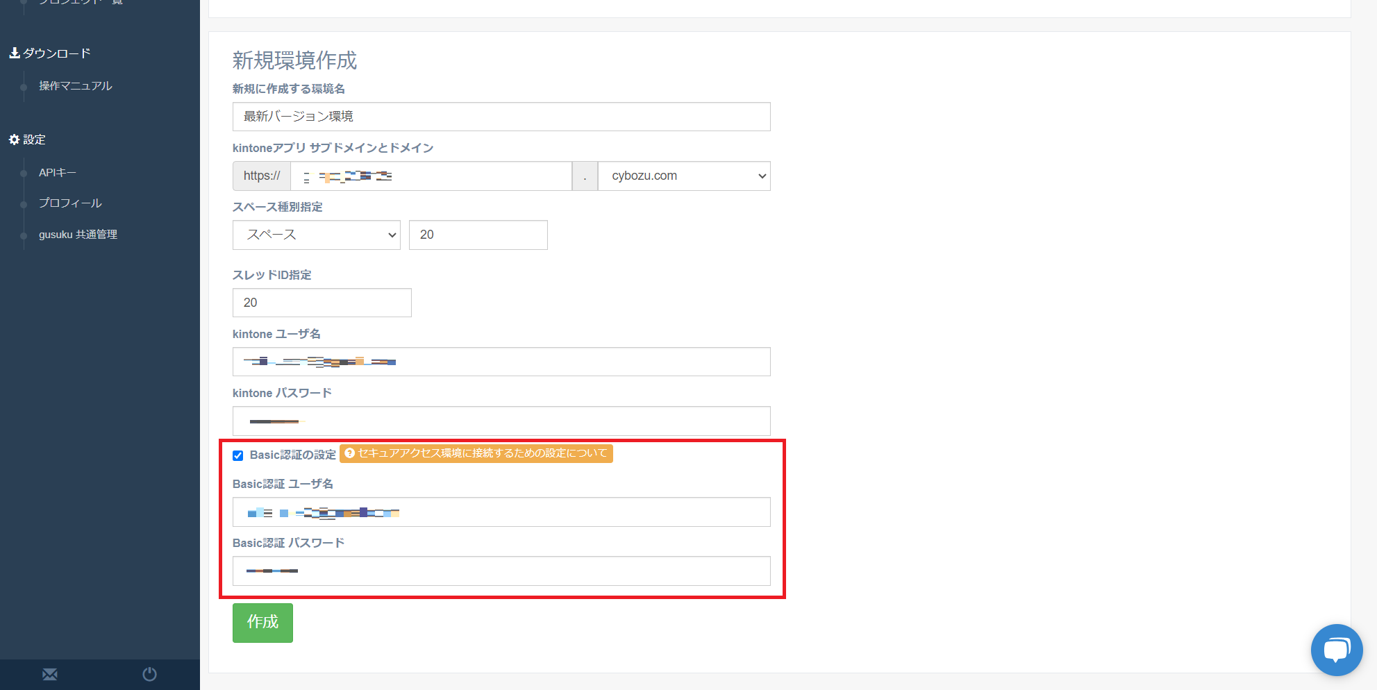 | kintone パスワード | 別途お知らせのパスワードを設定します |