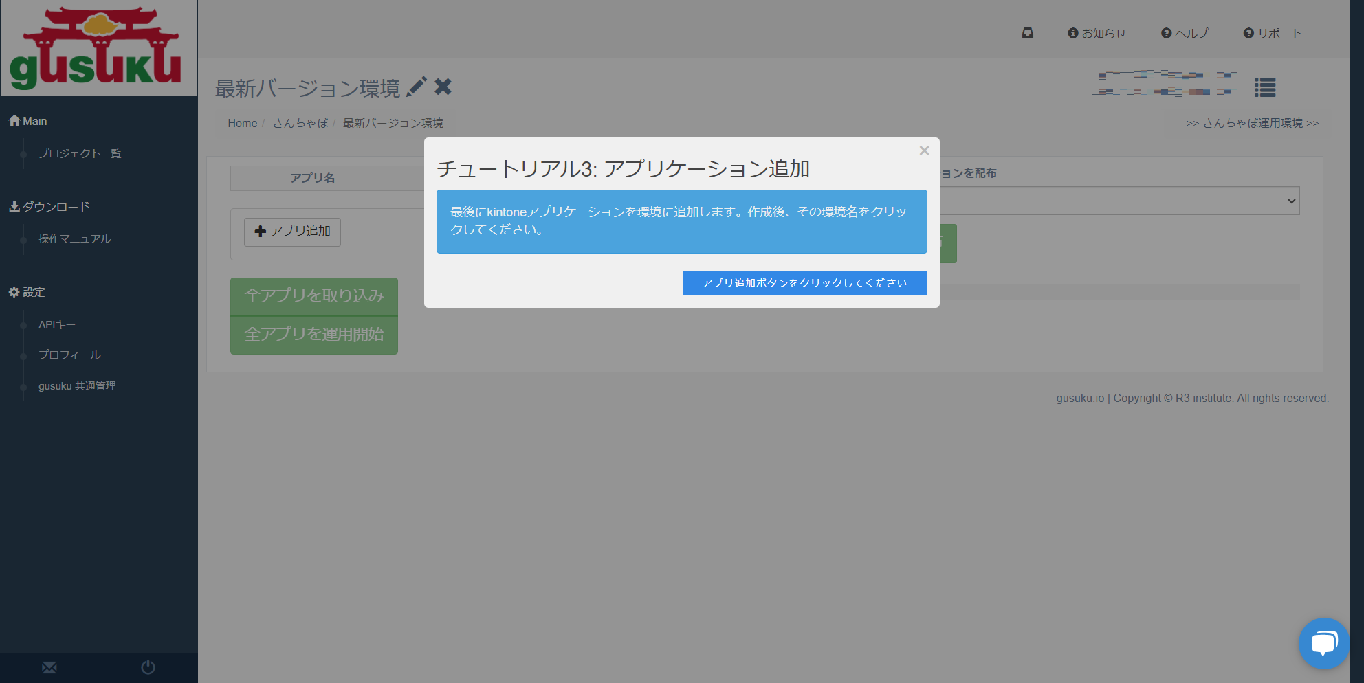 「最新バージョン環境」のアプリと「きんちゃぼ運用環境」のアプリを紐づけます。