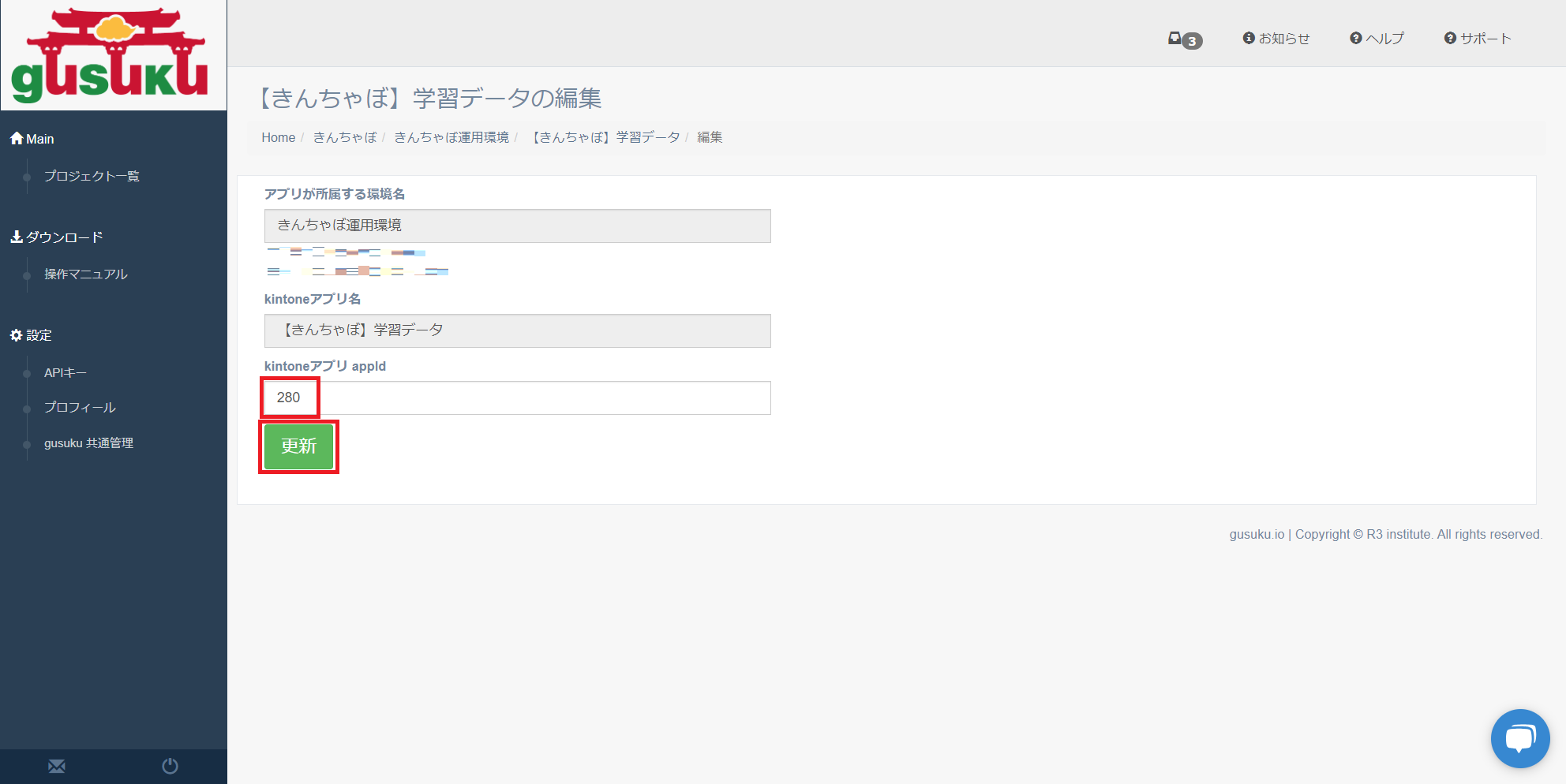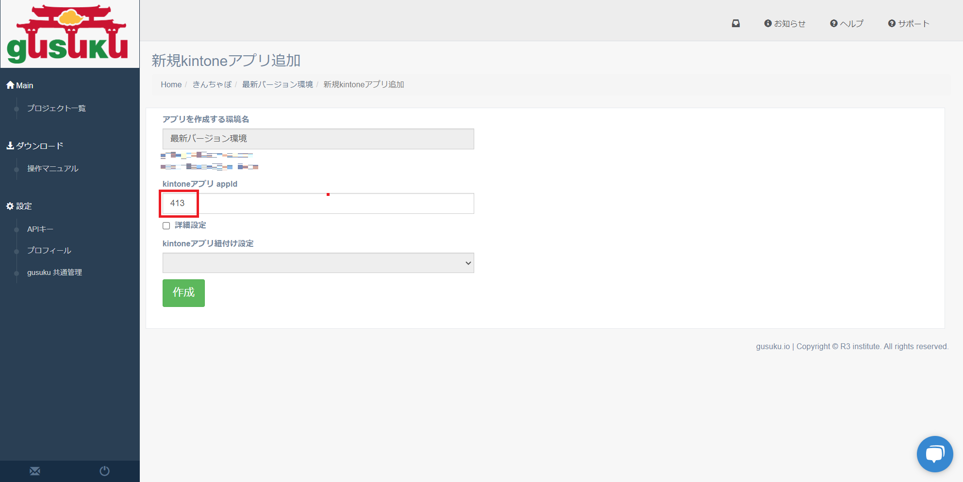 次で使用するため、きんちゃぼを使用している環境の【アプリID】を全てメモに控えます。