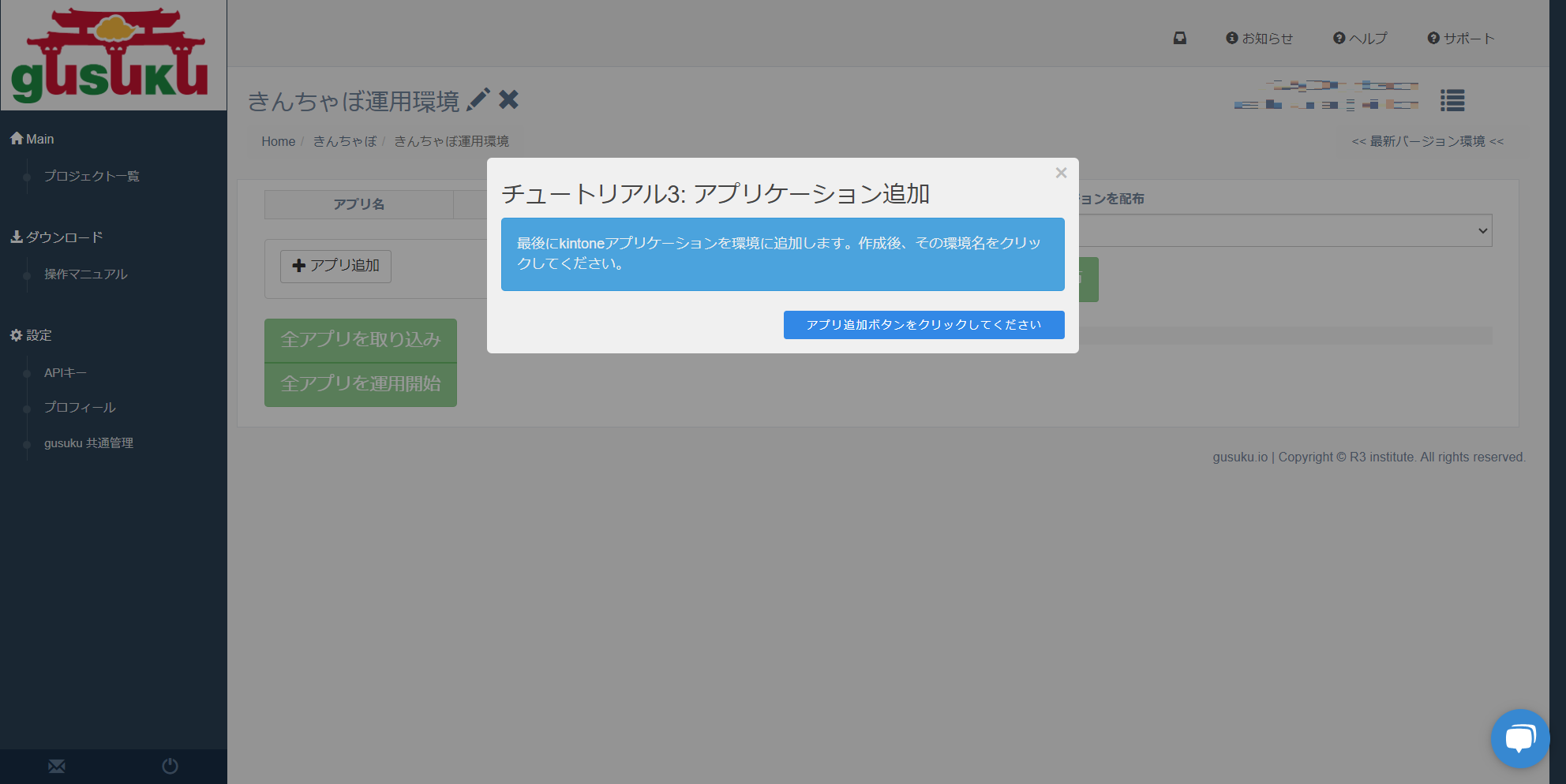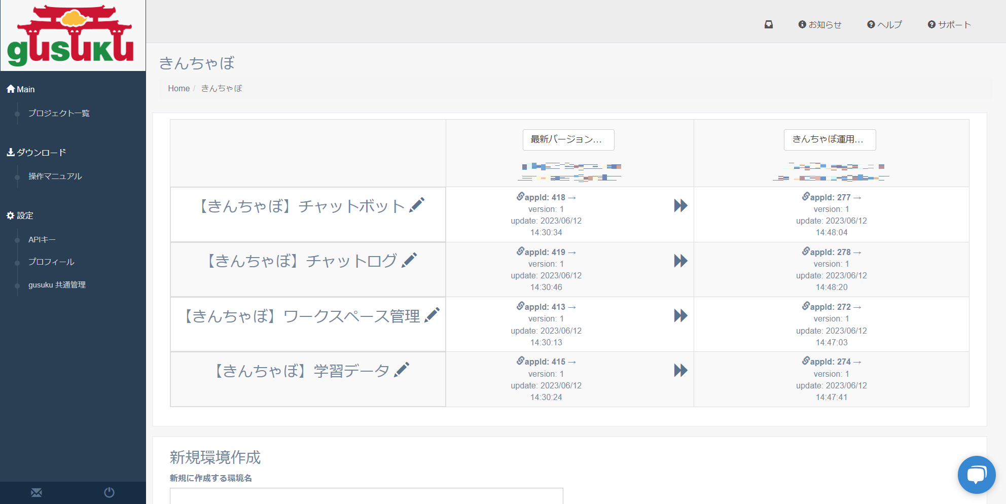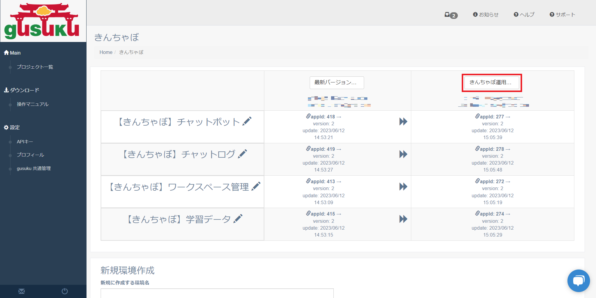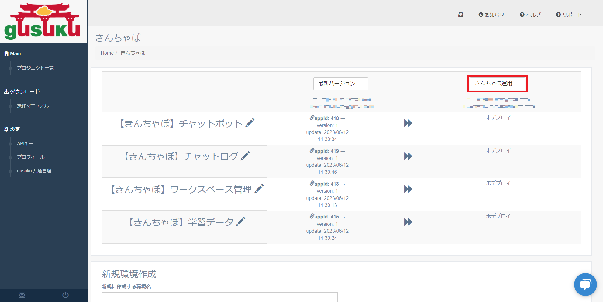 作成をクリックすると、「きんちゃぼ運用環境」が追加されます。
