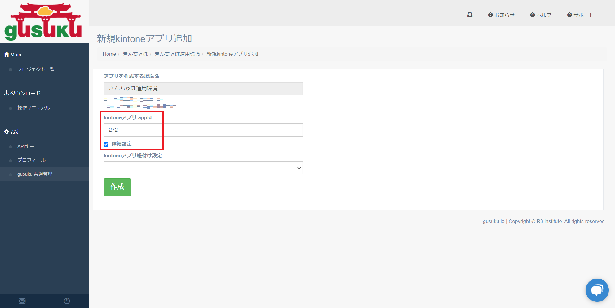 「kitoneアプリ appId」に対象のアプリIDを入力します。
