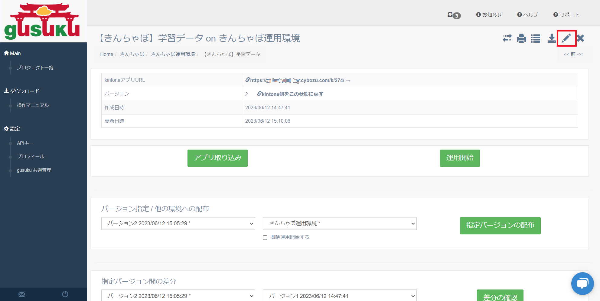 kintoneアプリの内容が変更になったアプリのみをバージョンアップします。